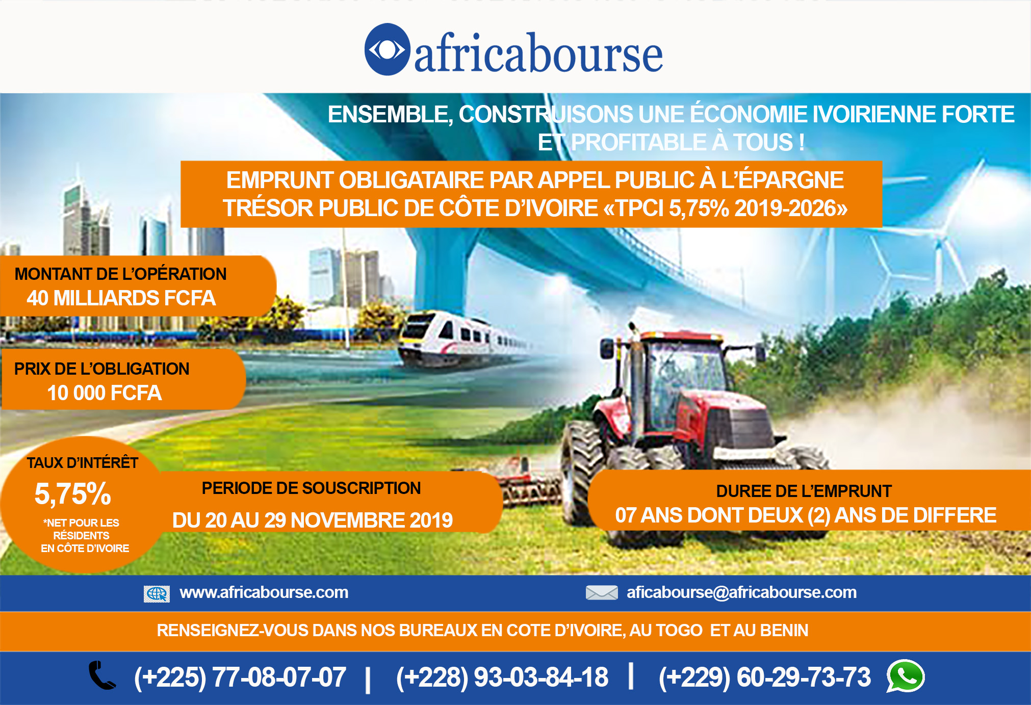 Libellé opportunité: EMPRUNT OBLIGATAIRE PAR APPEL PUBLIC À L’ÉPARGNE TRÉSOR PUBLIC DE CÔTE D’IVOIRE «TPCI 5,75% 2019-2026»
